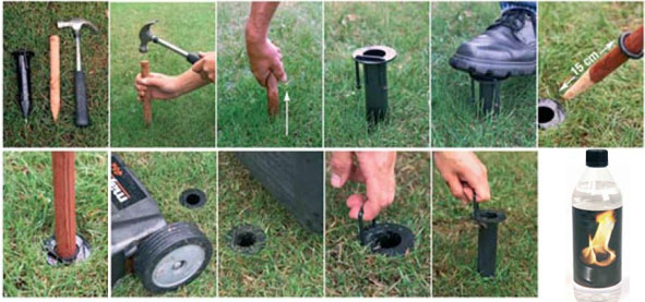 V namesto v betonsko podlago, je mogoče uporabiti kovinsko konico, da se gred pritrdi neposredno v zemljo. Gumijasti obroč in pribor je vključen v embalaži