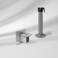 Fixing options: 90 kg concrete base, 90 kg granite base, 100 kg base with castors, 120 kg base with slabs, ground socket with support tube, various wall consoles mounting plates with support tube allowing a whole lot of