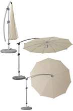 Accessories: The protective cover with zip and rod is included in the standard equipment, crank handle set suitable for all sizes except ø 250 cm, optional rechargeable battery light Osyrion.