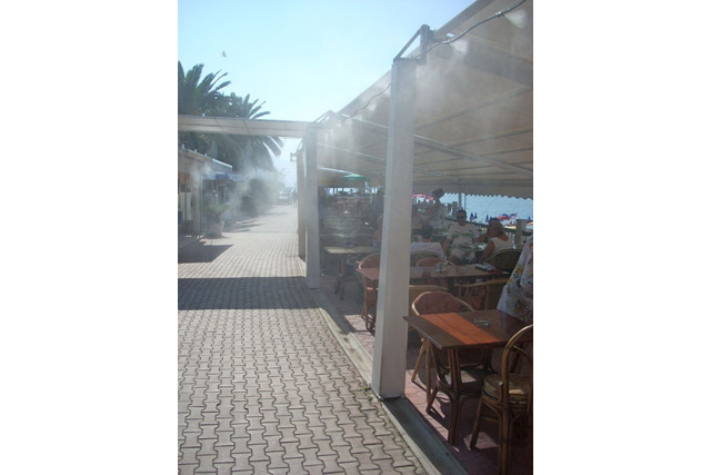 Sistemi megljenja se že desetletja učinkovito uporabljajo v zunanjih hladilnih aplikacijah. Ob pravilni zasnovi in namestitvi lahko ti sistemi znižajo zunanjo temperaturo tudi do 22 stopinj Celzija, ne da bi se pri tem vidno povečala relativna vlaga.