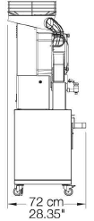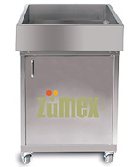 Stainless steel fitting with wheels and a large-capacity waste bucket.